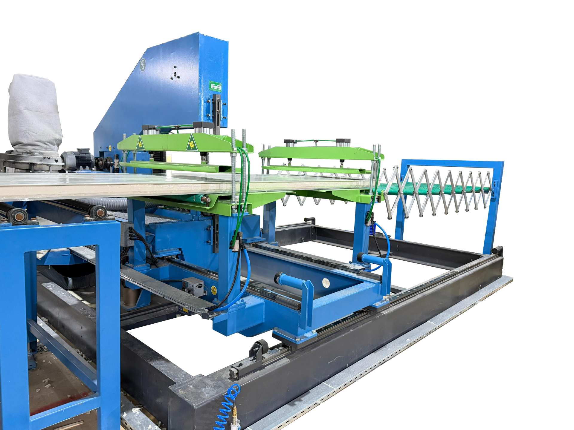 Modern sandwich panel üretim hatlarında uçar testere sistemleri genellikle şu teknolojileri içerir: